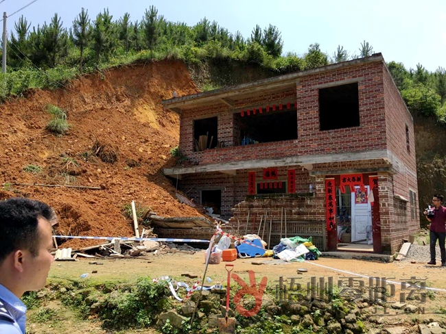 ????上午11點17分,梧州零距離網記者跟隨消防等救援隊伍趕到現場,先前到達的還有救護車和醫護人員。在塌方現場,記者看到有一棟靠山邊建的私人屋,兩層結構,整體還沒有裝修。