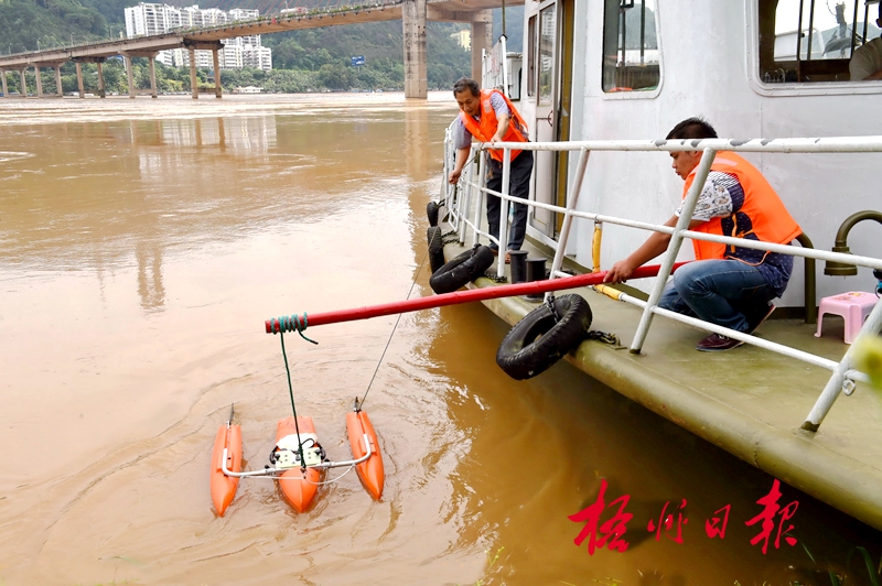 ??? 5月10日,在云龍大橋南岸梧州水文站對開江面,梧州水文站工作人員在安裝流速儀,對西江的流量進行監測。