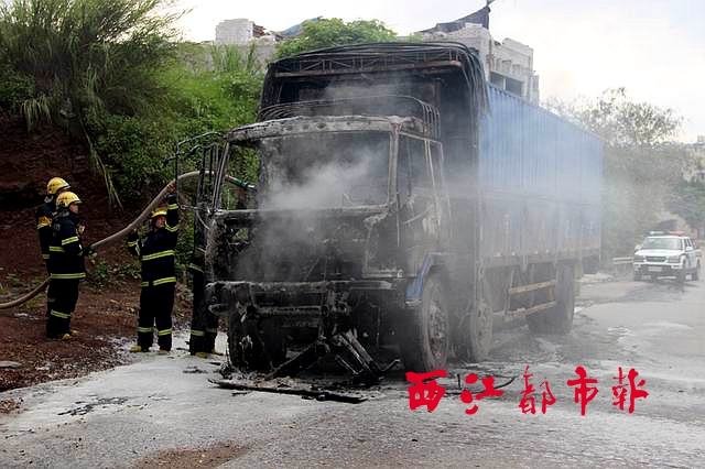 經(jīng)過(guò)消防官兵及時(shí)撲救,發(fā)生自燃的貨車沒有對(duì)其他車輛和行人造成傷害。通訊員 譚慶生 高誠(chéng)/攝