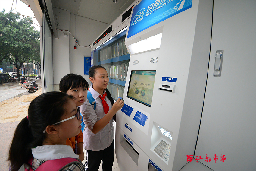 近日,幾名學生在大塘社區旁的24小時街區圖書館,通過自助終端平臺查閱圖書目錄,準備借書。今年4月份,梧州市圖書館在大塘社區設立了24小時街區圖書館自助服務點,有存書400冊,提供自助辦證、借書、還書、預借送書、網上查詢、信息發布等服務。