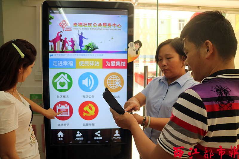 幸福社區的工作人員向居民介紹微信公眾平臺有關內容。西江都市報記者 紀榮蘭/攝