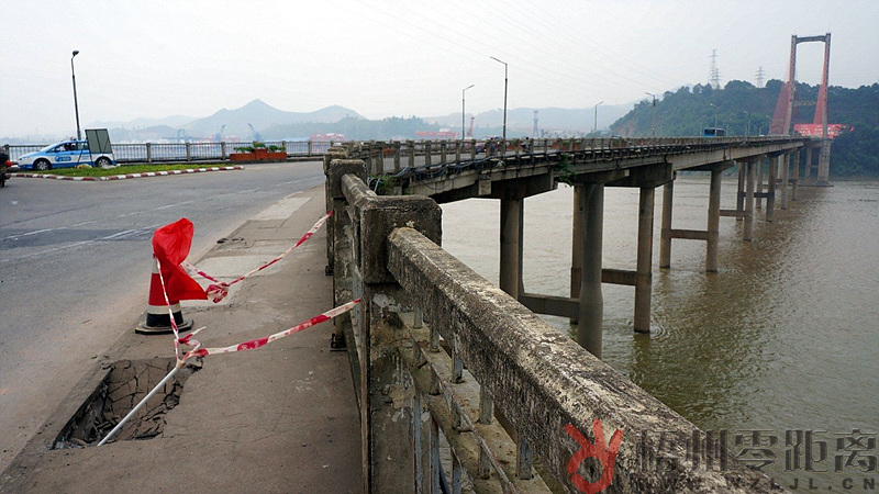 ????5月18日早上,人行道塌陷處位于大橋的橋頭處,當時已擺有警示標志,行人經過此處只能繞開,行走在橋面上。