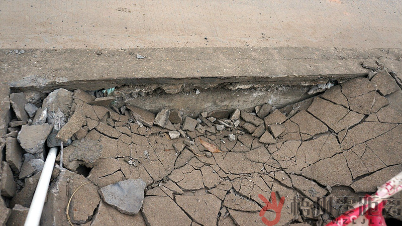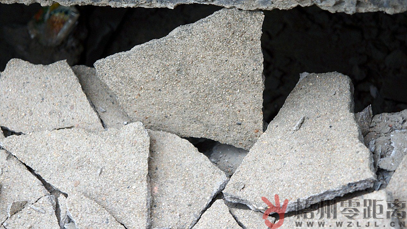 ????水泥向下凹陷,形成一個個裂痕,還有水泥細碎散落。