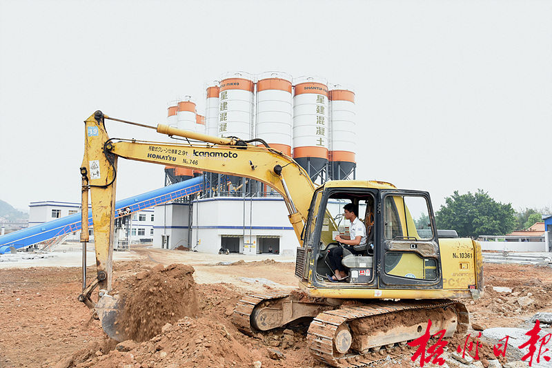 ????近日,在萬秀區星建混凝土攪拌站,施工機械正硬化廠區地面。
