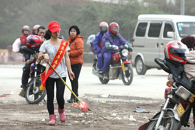 ????《服務春運》入選首屆全國職工攝影大展。每年春節前,川流不息的摩托大軍從廣東出發通過藤縣南梧二級公路流向貴港、柳州、貴州、云南、湖南、四川等地。為了讓開摩托回鄉的農民工平安順利回家團聚,藤縣人民政府牽頭,在最合適停車的二級公路邊設置臨時服務站,很多企業無償提供面包、快食面、熱粥、熱茶,醫院派出醫護人員免費服務,大中小學生志愿者紛紛來到服務站給予農民工熱情服務,使過往的農民工隨時有依靠,在寒冷歸途中隨時感到家的溫暖。