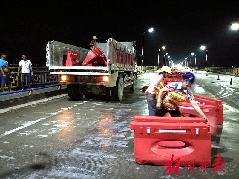 ????大橋于5月9日開始維修施工,并實(shí)行主河橋單向通行。目前,維修工程已按計(jì)劃完成,工作人員連夜撤離反光錐筒和水馬等圍擋設(shè)施,當(dāng)日起恢復(fù)大橋雙向通行。