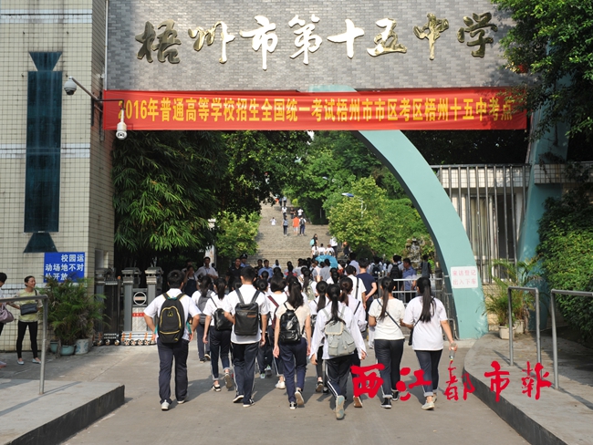 ????據悉,今年梧州市區、藤縣、蒼梧縣、蒙山縣、岑溪市五大考區、13個考點620個考場順利完成高考首日考試,無違規違紀現象。 |