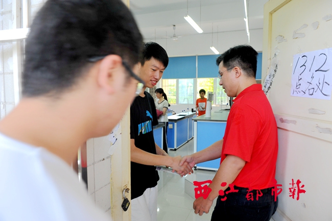 ????“老師,我忘記帶身份證了,怎么辦?”當考生陸續進入考場時,梧州高中1302班一位姓彭的學生匆匆找到帶隊老師。“別急,我們帶了證明書,只要說明情況,考點主考簽了字,就可以順利進場了。”梧州高中帶隊老師立即拿出事先準備好的證明書,填寫上考生姓名、班級,在最快時間找到十五中考點的主考簽字,并親自將學生送進考場。