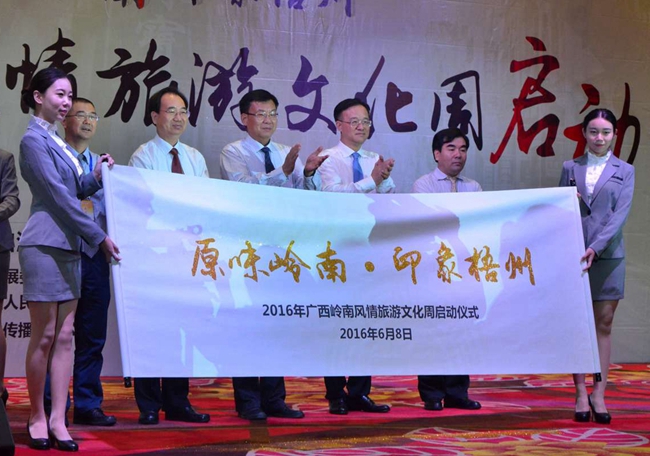 ????自治區旅游發展委員會副主任甘霖,廣東省旅游局、海南省旅游發展委員會有關領導,以及中共梧州市委書記、市人大常委會主任黃俊華,梧州市市長朱學慶出席了啟動儀式。