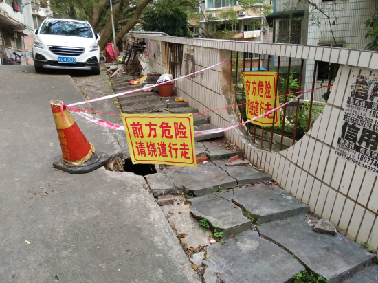 ????傍山社區工作人員小羅告訴記者,在接到居民反映情況后,社區第一時間派人到現場了解情況,并采取了應急措施,在塌陷處周邊拉起警戒線,設置警示標志,提醒居民不要經過此處。此外,社區還打報告給上級部門說明情況,尋求解決辦法。 |
