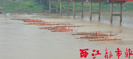????“砰!”隨著發(fā)令炮聲響起,十七支龍舟隊伍火力全開,快速向前挺進。西江河面上頓時水花飛濺,哨聲和鑼聲此起彼伏。根據(jù)規(guī)則,各支龍舟隊伍在前500米必須直道行駛,艄公也不允許打艄。
