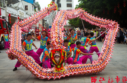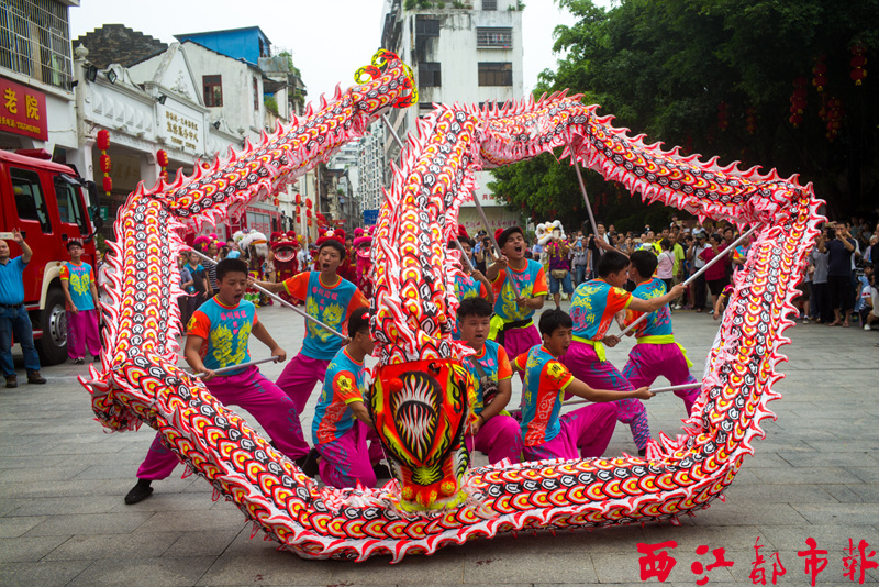 6月9日,2016年廣西嶺南風情旅游文化周系列活動龍獅巡游表演在桂江一橋至龍母景區沿街舉行,龍獅隊為市民游客帶來精彩演出,使節慶更喜慶熱烈。?通訊員?楊楊/攝???