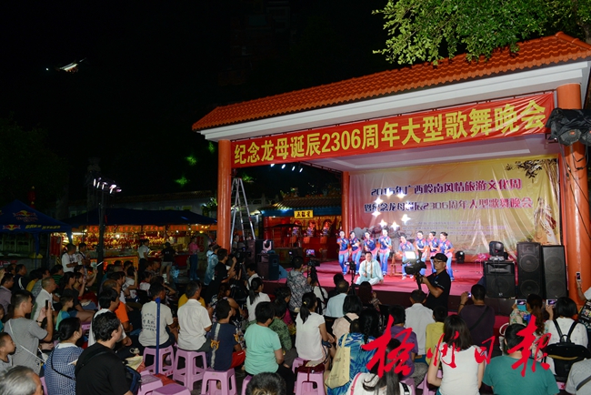 6月11日,在龍母廟景區,市民游客正觀看2016年廣西嶺南風情旅游文化周暨紀念龍母誕辰2306周年歌舞晚會演出。 李鴻榮 攝