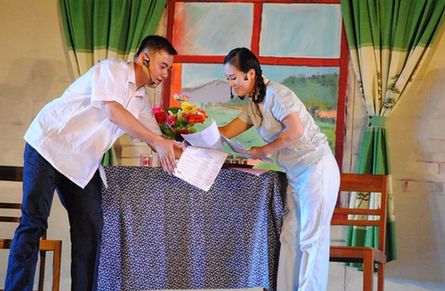 網點員工向前來辦理業務的客戶發放宣傳折頁。?廖穎志 攝??