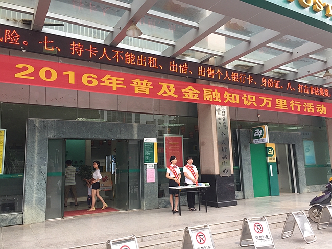 ??? 為進一步向社會公眾宣傳普及金融知識,維護金融消費者的合法權益,提高公眾的金融意識,構建和諧的金融關系,6月10日,2016年“普及金融知識萬里行”在郵儲銀行梧州市分行正式啟動。啟動儀式當天,梧州市分行在營業部門前擺放宣傳牌,掛起橫幅,設置宣傳臺,開展現場咨詢并發放宣傳折頁,向廣大市民普及金融知識。