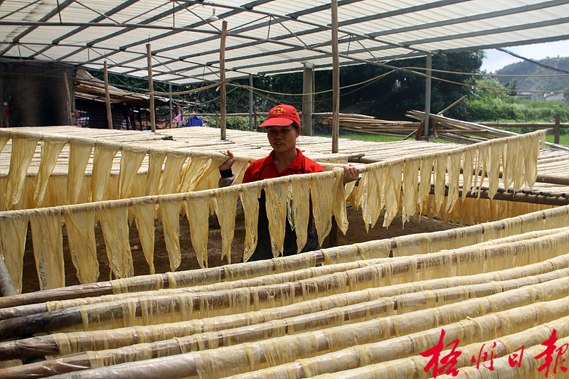 ????據悉,古龍鎮有不少村民掌握加工腐竹的手藝,目前全鎮有腐竹加工作坊近50家,年產量約50萬公斤,產品遠銷廣東、湖南等地。黃群禮 攝