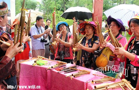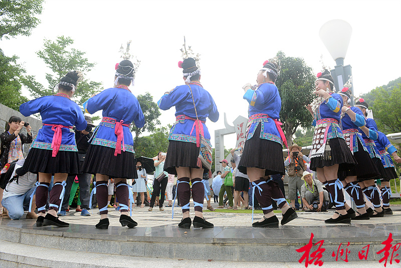 在這次非遺展覽中,游客看到了多種多樣的粵桂非遺代表性項目。圖為柳州的侗族器樂表演。