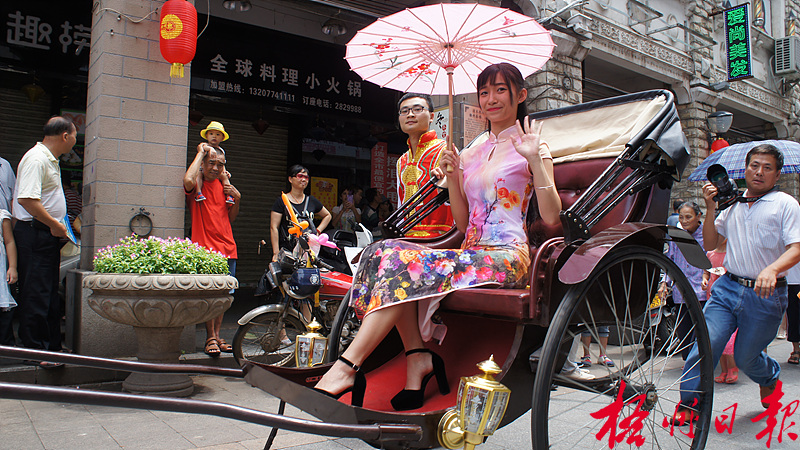 ????文化周活動期間,趁著端午小長假,不少市民都攜家帶眷地去各景點一一觀看這場嶺南文化盛宴。據悉,從6月8日到12日,活動相關單位方還精心設置了A、B兩條“原味嶺南·印象梧州”精品路線,A線線路為石表山—李濟深故居—龍母廟,B線線路為李濟深故居—六堡鎮—龍母廟—園博園非物質文化展覽館。廣州市旅游局局長朱力、廣州市旅游局副調研員譚勇、南寧市旅游發展委員會黨組成員、副調研員喻學文等來自兩廣各地的一共22名嘉賓參加了A線的體驗之旅,B線則有14名嘉賓、媒體參加體驗。此外,我市旅行社也接待了不少來自粵港澳、廣西各城市等地方的游客,據市旅發委信息科負責人表示,本次文化周活動,從8日到10日三天,共計41.9萬游客來梧游玩。 |
