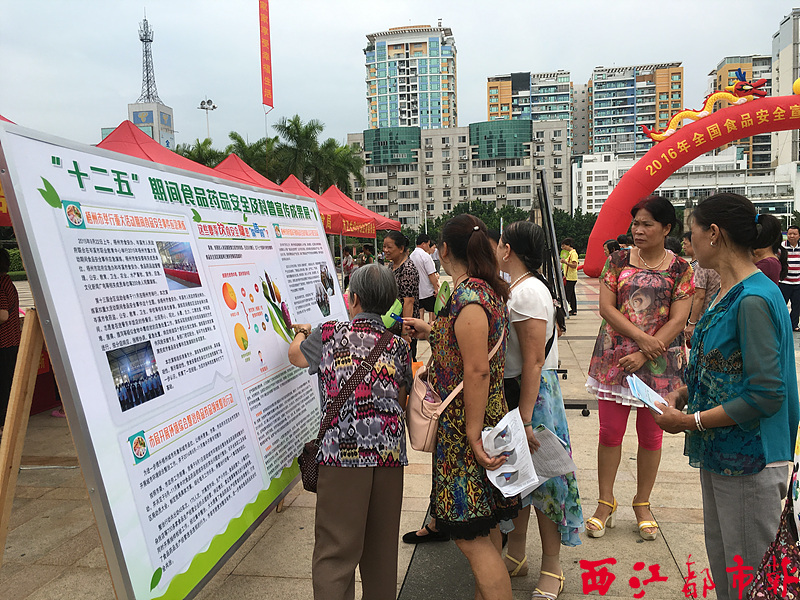 啟動儀式上,不少群眾聚集在展板前,了解食品安全知識。 (西江都市報記者 李玉瑩/攝)