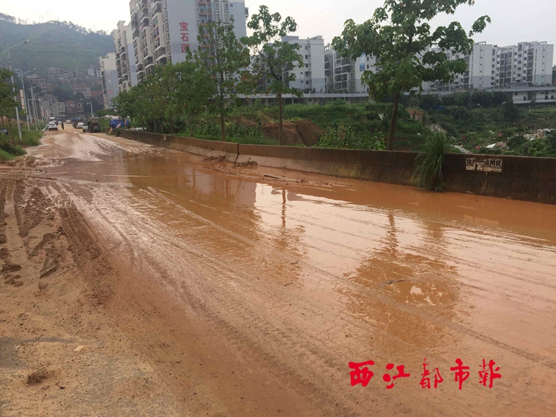 ????6月15日,記者來到灝景玥城社區。社區工作人員表示,新聞路每到雨天就會發生黃泥漫路的情況,晴天灰塵滿天,這與附近施工工地不規范施工有關,但尚不清楚到底是哪個工地施工不當造成的。社區已經將問題上報給相關部門,至今尚未有相關處理結果。