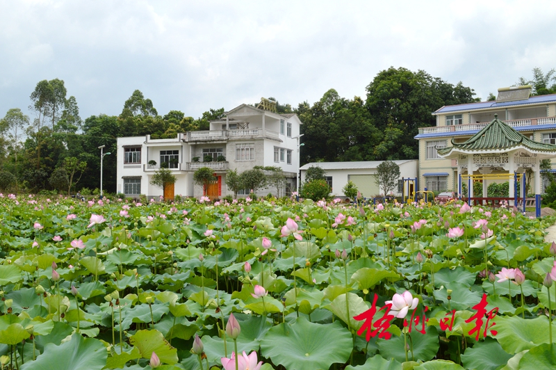 ??? 近年來,蒙山縣結合“生態鄉村”活動,著力做好水庫移民新村生態環境建設,房屋呈現出白墻青瓦的桂北民居特色風貌,建有涼亭、體育設施,同時水泥村道干凈、村里綠樹成蔭、村前池塘荷花盛開,村里垃圾有人清、晚上有太陽能路燈。圖為西河鎮青子組水庫移民新村(攝于6月18日)。