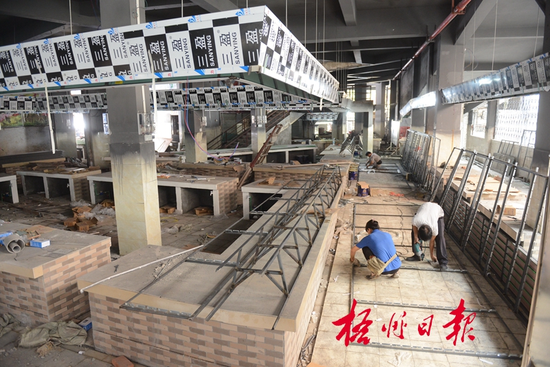 ????目前,萬壽宮市場升級改造工程已完成一樓管線更換、地面鋪設(shè)等工作,140多個攤位大部分已完成砌建,工人正抓緊搭建攤位鐵架,預(yù)計8月可竣工。 李鴻榮 攝