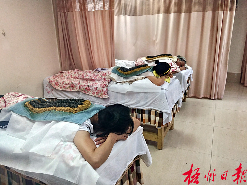 市民在市婦幼中醫(yī)科做長蛇灸。 韋曉燕 攝