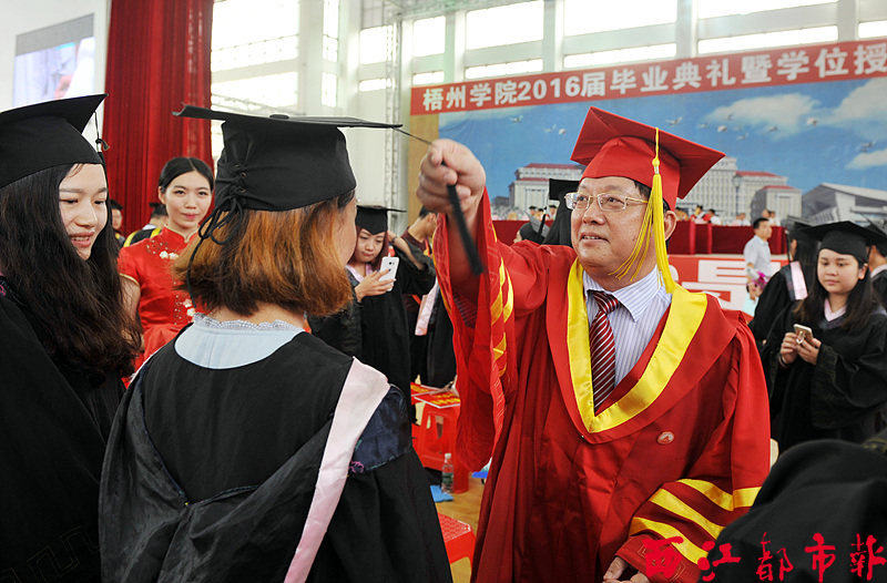 ????6月30日,梧州學(xué)院校長(zhǎng)為2016屆本科畢業(yè)生撥穗。