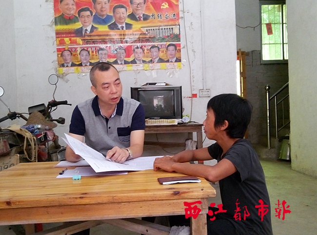 ?潘元璋在貧困戶家中核實情況,摸清致貧原因,為下一步開展脫貧幫扶工作做準備。 (西江都市報記者 黃海志/攝)
