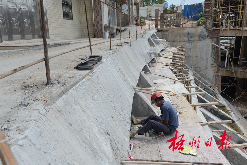 ??? 7月4日,在長洲區廣和村地災隱患點,工人在進行護坡施工。