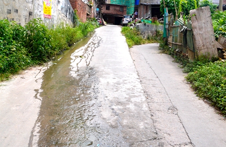 ????從向小華家中走出來,胡露穎與村干部們一起來到里秀小學對出的村道,進行實地勘察。由于這條村道的排水管堵塞,導致村民用于灌溉農田的水,全部溢出路面。一到雨天,情況更為嚴重,不僅泥沙被沖到路面,造成交通不便,而且由于不及時排水,農田被淹,路基也被沖毀。