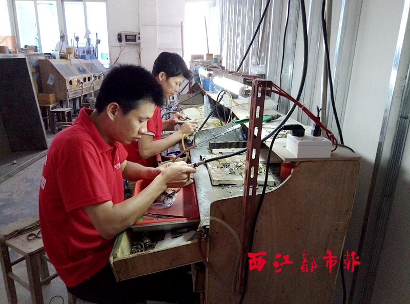 ????南寧人梁志成是一名“80后”,一直從事飾品行業(yè),在廣東東莞擁有一家50多人的飾品生產(chǎn)廠。今年初,梁志成從朋友圈了解到梧州市龍圩區(qū)將開設(shè)中小微企業(yè)孵化園,覺得時(shí)機(jī)成熟的他在此創(chuàng)辦了自己的第二家飾品廠。今年3月,飾品廠正式運(yùn)營,雖然規(guī)模不大,但已為周邊40多名村民解決了就業(yè)。昨天,記者在該飾品廠的生產(chǎn)車間看到,工人們在各自的崗位上熟練地操作著燒焊、打磨等工序,生產(chǎn)寶石飾品。