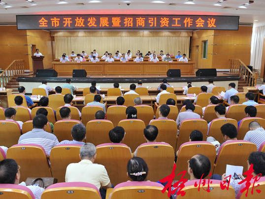 7月8日,全市開放發展暨招商引資工作會議召開,市委書記、市人大常委會主任黃俊華,市委副書記、市長朱學慶,市政協主席吳漢華出席會議,13個單位在會上遞交了“招商引資工作責任狀”。 孟亞西 攝