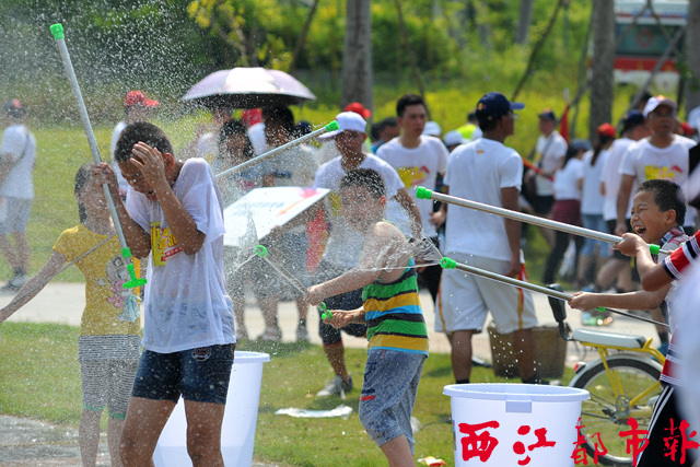 ????7月9日,幾名小朋友用水槍互噴清水嬉戲。當(dāng)日,在玫瑰湖公園內(nèi)舉行的2016年梧州“沖能量 樂享跑”城市接力跑活動(dòng)中,水槍大戰(zhàn)環(huán)節(jié)受到市民的熱烈歡迎,不少童心未泯的大人也參與其中,與孩子們一起享受夏日清涼。