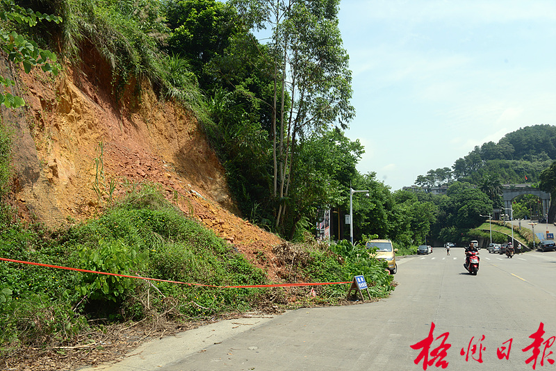 ????由于近日連降大雨,白云山公園正門對面發生上邊坡塌方,滑下的山泥幾乎占去半幅車道。目前,塌方點周圍已設置警戒線。 李鴻榮 攝