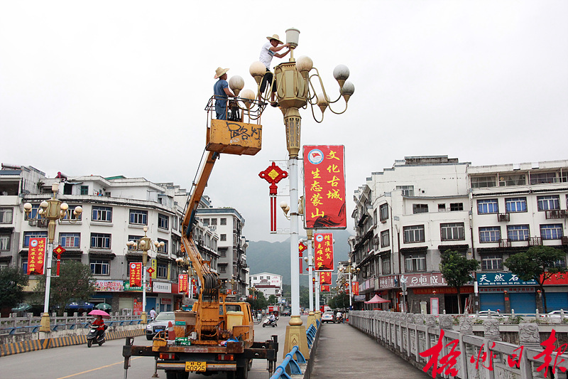 ????前段時間,蒙山縣被暴風(fēng)雨襲擊,縣城部分地段路燈受損嚴(yán)重。天氣轉(zhuǎn)晴后,該縣市政管理部門立即組織搶修供電線路,并及時安裝更新被暴風(fēng)雨損壞的路燈,確保縣城街道正常照明。江永錄 攝
