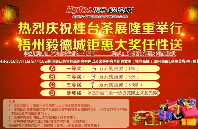 ????為熱烈慶祝項(xiàng)目即將啟動(dòng)試營業(yè),梧州毅德城現(xiàn)將僅存的少量超值現(xiàn)鋪鉅惠推出,回饋廣大新老客戶。可售可租,即進(jìn)駐,即裝修,即營業(yè),不僅免租期超長,更可享超低租金,搶占商業(yè)新城的第一桶金!桂臺(tái)茶葉展期間購鋪更實(shí)惠,多重優(yōu)惠等著您。暢享財(cái)富盛宴的第一杯羹!恭迎廣大市民前來咨詢洽談!