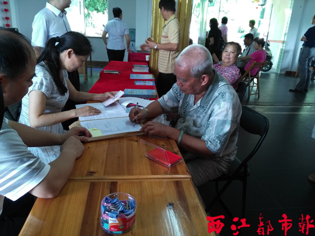 7月15日,萬(wàn)秀區(qū)百花沖片區(qū)棚戶區(qū)改造工程指揮部人員為已簽約征遷戶辦理發(fā)放補(bǔ)償款的手續(xù)。吳艷虹/攝
