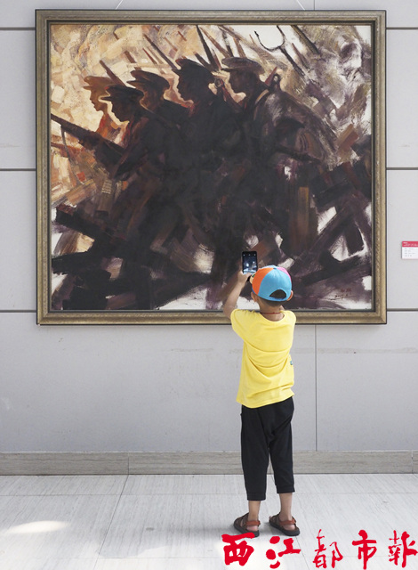 ????當(dāng)日上午,許多市民帶著小朋友一起來觀看這次展覽。梧州市十中的黃老師和丈夫帶著自己兩歲半的雙胞胎小朋友來觀展。在十中從事音樂教育的黃老師說,這次展覽除了有豐富的攝影書法作品展出,還有一些對(duì)紅軍長征歷程寫實(shí)的美術(shù)作品,在自身感受城市文化底蘊(yùn)的同時(shí),還能讓下一代了解紅軍抗戰(zhàn)歷程,教育他們珍惜當(dāng)下的幸福生活,“雖然小孩還小,但是也不妨來感受一下氛圍。”黃老師說。