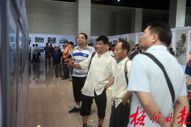 ????7月15日,在市文化展覽中心,市民正在觀看美術書法攝影作品。當日,“圓夢路上”紀念中國共產黨成立95周年、紅軍長征勝利80周年廣西美術書法攝影作品巡展(梧州站)開幕。這次展覽由自治區文聯、市委宣傳部主辦,廣西美術家協會、廣西書法家協會、廣西攝影家協會和市文聯承辦,共展出美術、書法、攝影作品203幅,其中我市參加梧州站展出作品共50幅。