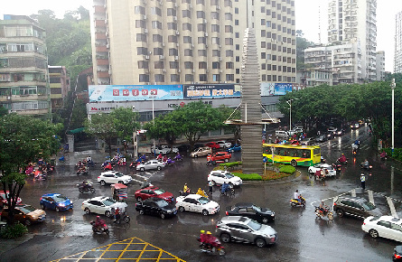 下班高峰期降大雨 車流量較大路口通行緩慢