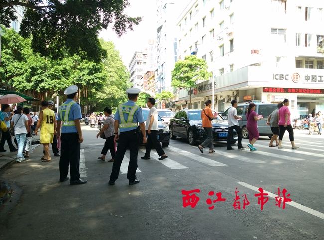 民警在西江三路開展“斑馬線上的文明”主題活動。 陳雨燕/攝