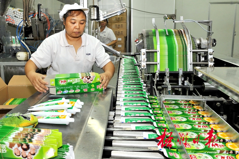 ????7月17日,在廣西奧奇麗股份有限公司牙膏生產(chǎn)車間,“田七”牙膏正在源源不斷下線。