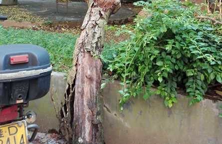 棗沖小游園內枯木傾斜存隱患