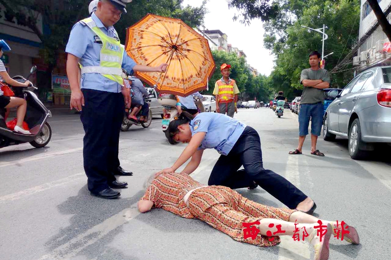 ????幾位民警連忙跑了過去,來到老人身邊才發現,老人口鼻直冒鮮血。在不清楚其傷勢情況下,民警不敢貿然將其移動。于是,幾位民警分工合作,一人撥打120急救電話,一人在路口指揮車輛緩慢通行,一人向群眾借傘為老人遮陽,一人翻找紙巾為老人止血。老人身體輕顫著,掙扎著想爬起來,但手腳不聽使喚,民警跟著趴下去,在老人耳邊連聲安撫:“別動別動, 我們已經叫了救護車,您歇一會,醫生就來了。”