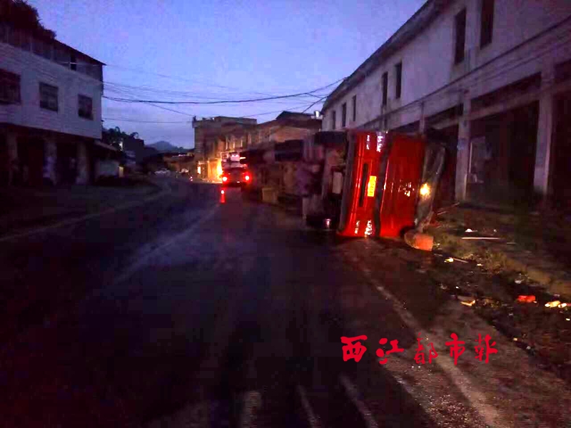 ????西江都市報訊(記者 楊珊 通訊員 梁穎睿)7月21日凌晨,梧州市龍圩區回龍小學對開路段發生一起重型半掛牽引車側翻事故,造成車上一名乘客受傷,并殃及路邊七間商鋪受損。事發后,該車還出現了嚴重漏油的情況,造成現場環境一片狼藉。 記者從梧州市公安局交警支隊龍圩大隊了解到,當天凌晨3時許,該大隊接到報警后,立即調派新地中隊的民警出警處置。當民警到達現場后,看到該輛重型半掛牽引車呈左側翻在地狀。事故中,該車一名乘客的手部受輕微傷,并無大礙。但由于該車車體較大,因此,在側翻時,造成了路邊七間商鋪受到不同程度的損壞。