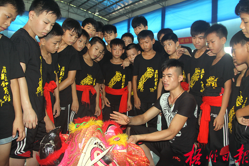 ??? 藤縣獅舞技藝于2011年被列入國家級非物質文化遺產名錄。暑假期間,藤縣獅舞技藝傳承基地為農村留守兒童開設課堂,豐富他們的暑假文化生活,也讓非遺傳承后繼有人。
