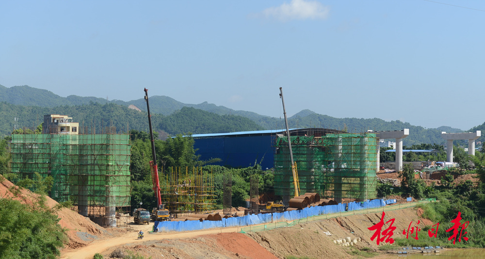 7月22日,環城高速西江特大橋南岸引橋橋墩在建設施工中。