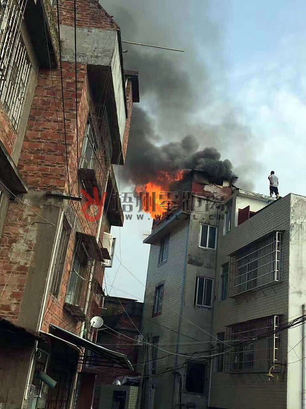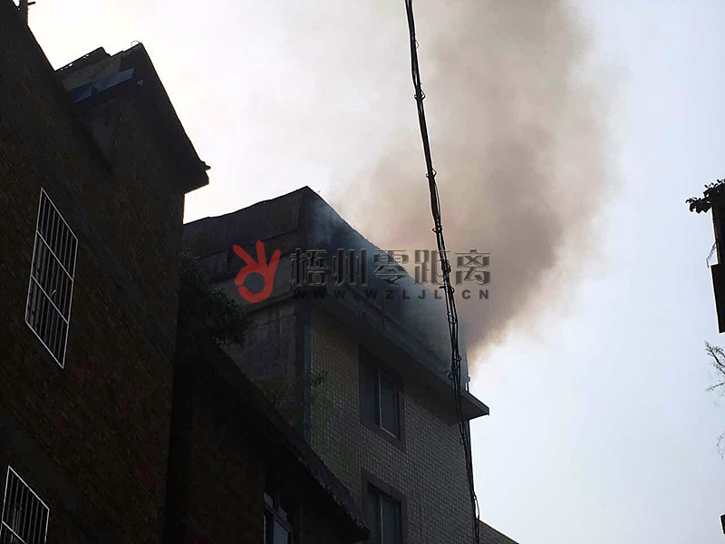 ??? 梧州零距離快訊 今天(7月25日)上午8時許,步埠路三級61號民房天臺發生一起火災,消防官兵出動救火。經及時撲救,8時40分左右,火勢得到完全控制,現場無人員傷亡,事故發生原因正在調查中。據屋主猜測,起火原因可能為線路出現問題,引起周邊木柴等雜物起火燃燒。(羅卡妮)