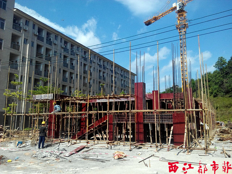 ????7月25日,梧州高級中學新校園建設二期工程項目工地,施工人員正在進行1#宿舍樓二層的建設。